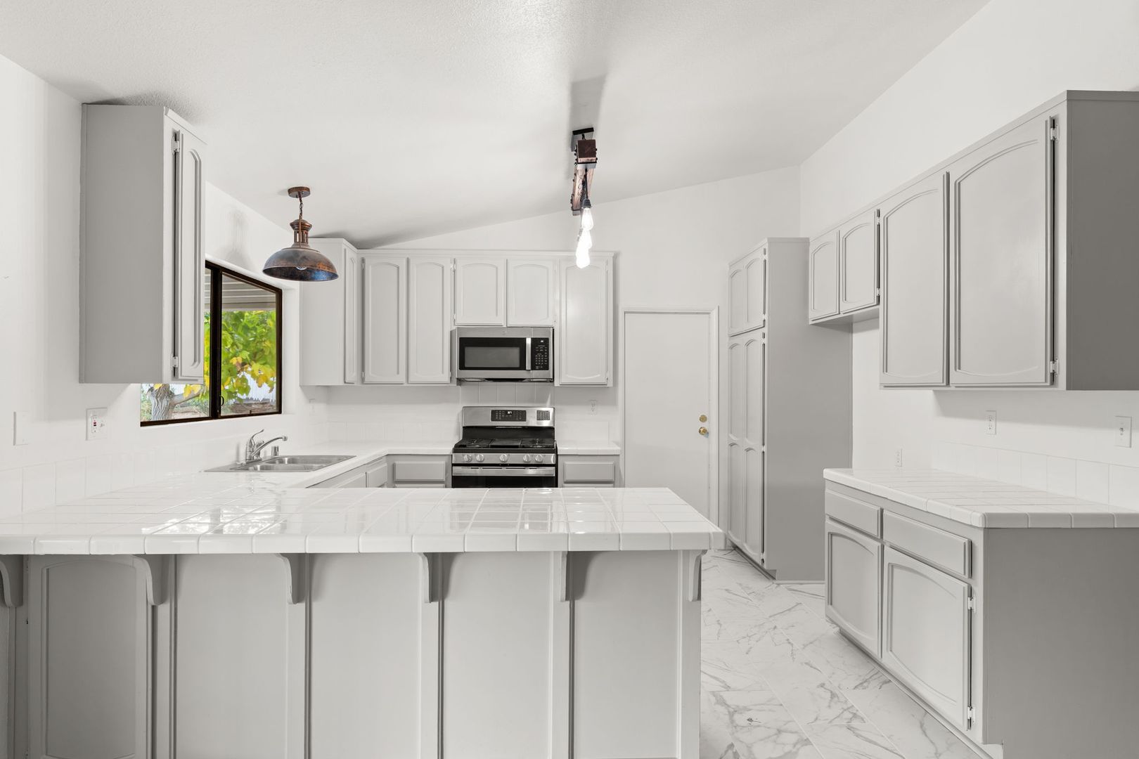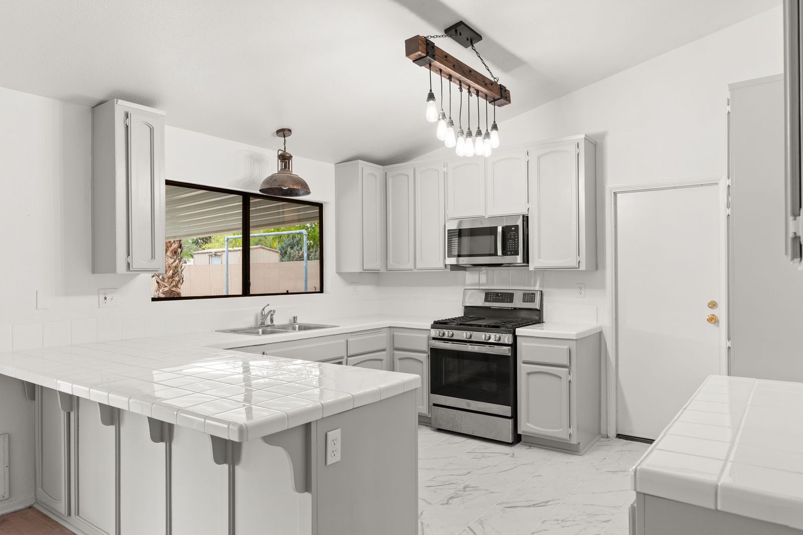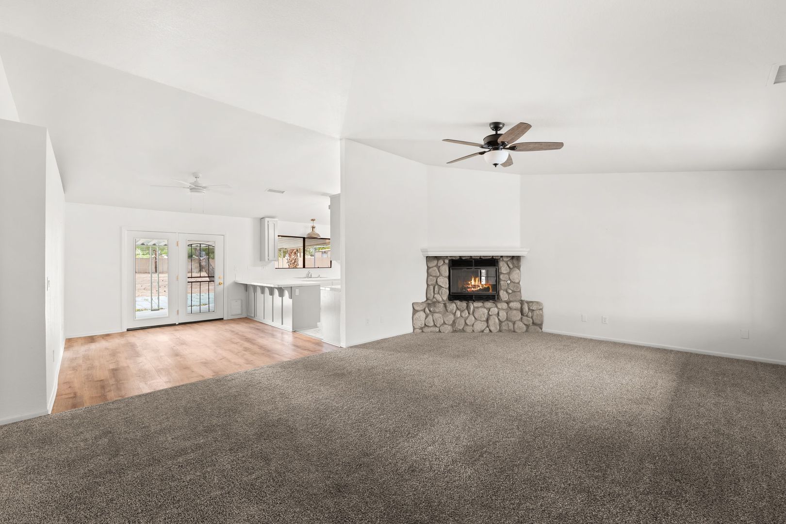 Welcome to this newly renovated gem located in the heart of Hesperia, CA. This home boasts three spacious bedrooms and two full bathrooms, including a master suite with a his and hers sink setup. The family room is a cozy haven, complete with a warm fireplace that adds a touch of charm and comfort. The house is equipped with washer and dryer hookups for your convenience. The large, fenced-in yard offers ample space for outdoor activities and gatherings. A three-car garage provides plenty of room for vehicles and storage. Ceiling fans are installed throughout the home, ensuring a comfortable living environment. This property is a perfect blend of comfort, convenience, and modern living. Don't miss out on this fantastic opportunity!